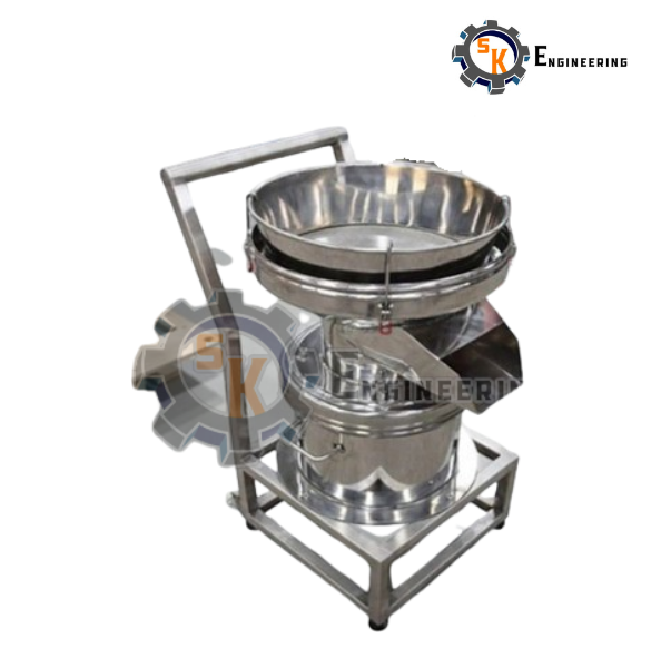 A high-performance stainless-steel circular vibratory sieve designed for precise separation, grading, and filtration of dry powders, granules, and liquids in continuous processing. Using high-frequency vibration and replaceable mesh screens, the unit efficiently passes undersized particles while retaining oversize material. It ensures fast, hygienic, and low-dust screening—ideal for food, pharmaceutical, chemical, cosmetic, and allied industries.